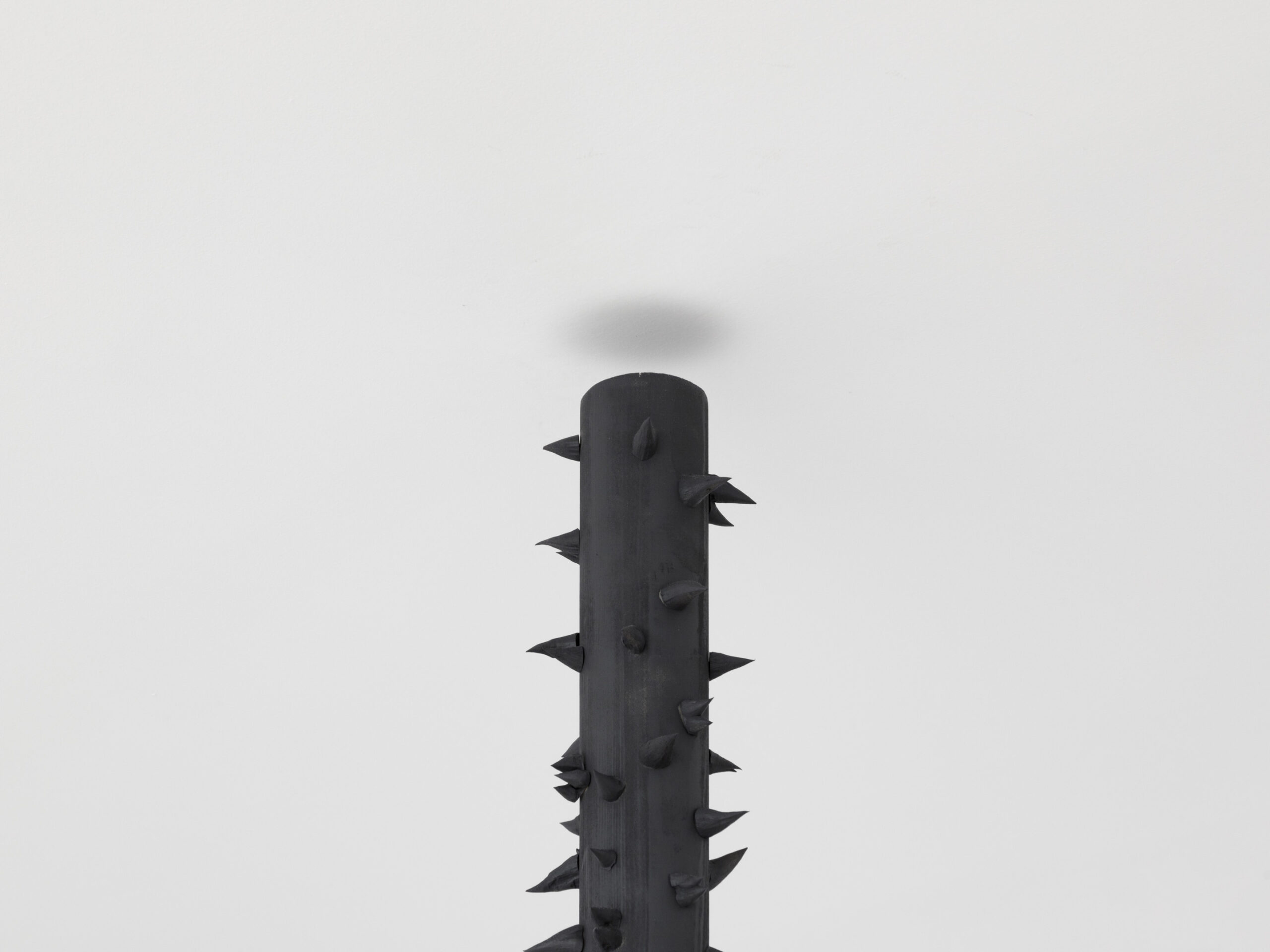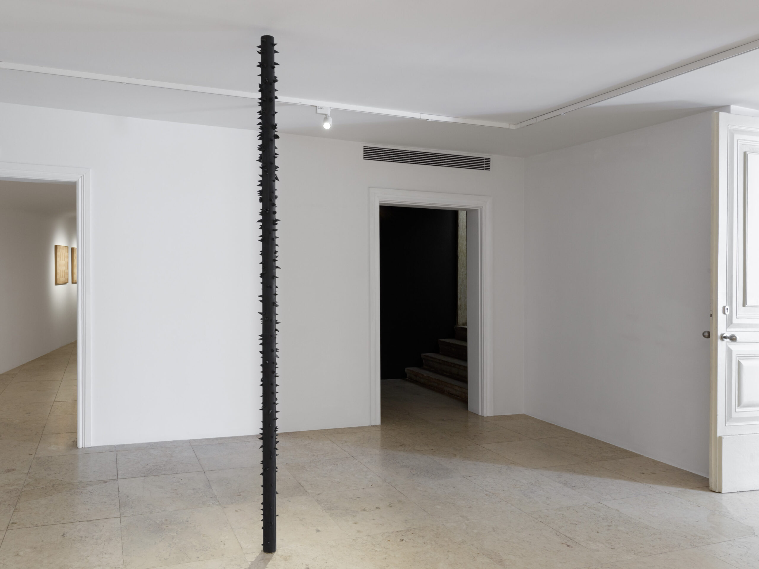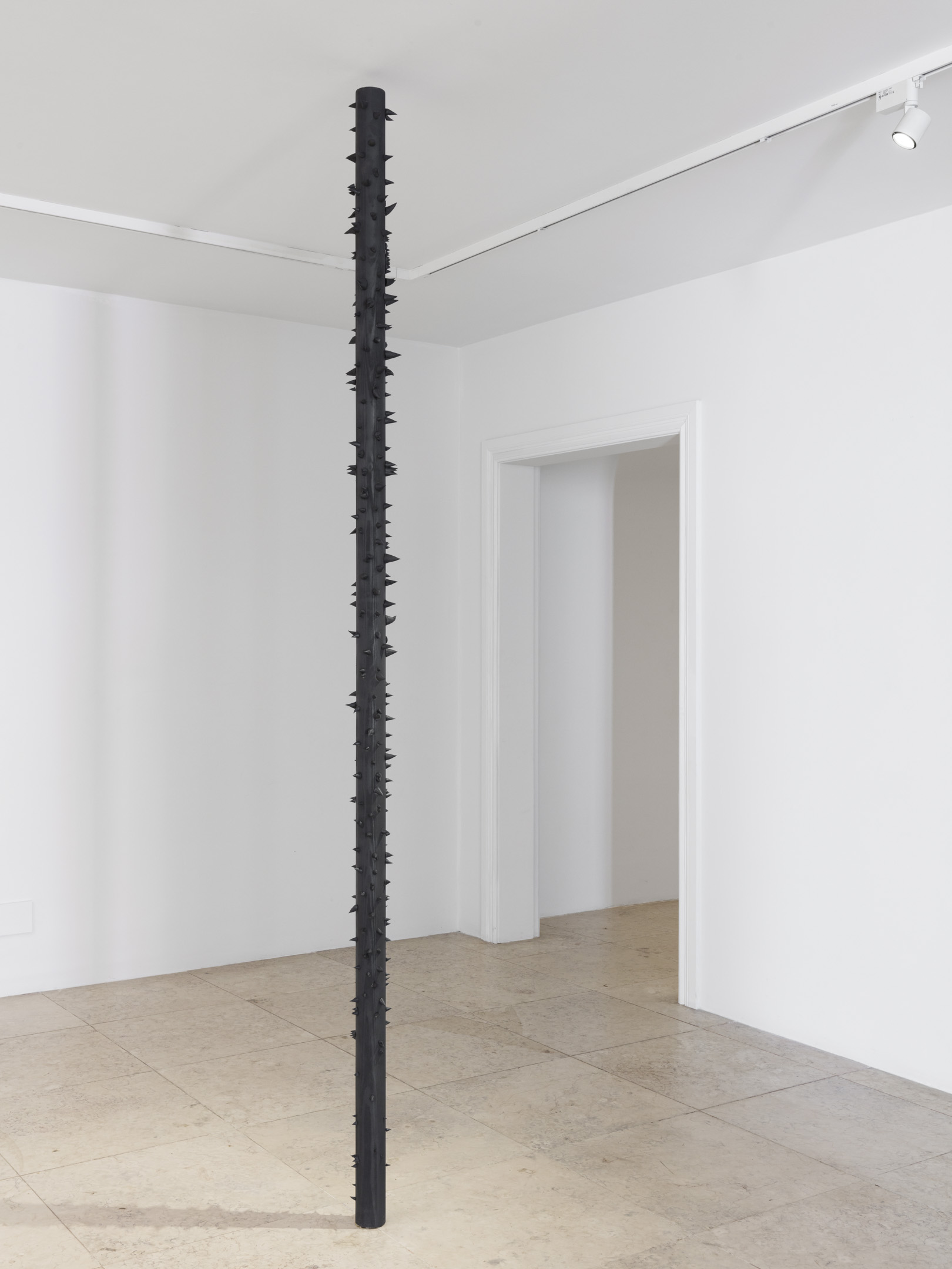Wood with floss-silk tree thorns, acrylic paint and nails Ø7 x 270 cm
